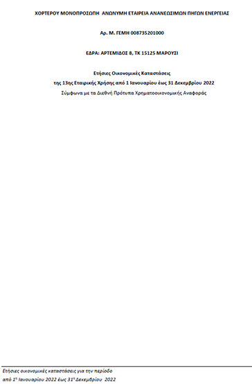 Για να κατεβάσετε τις Χρηματοοικονομικές Καταστάσεις του 2022 πατήστε εδώ